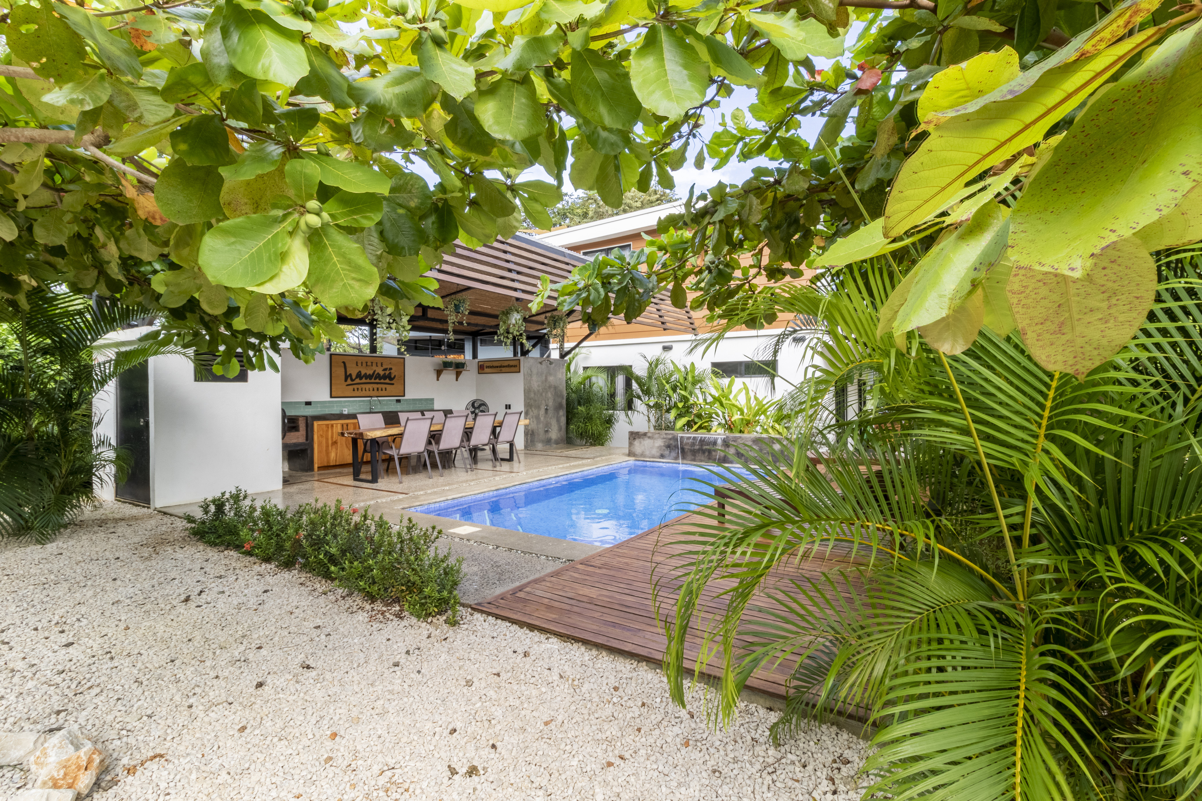 Descubra Little Hawaii Avellanas, una tranquila colección de cuatro estudios artesanales a pasos de las olas de clase mundial de Playa Avellanas, Costa Rica. Relájese junto a la piscina y disfrute de la verdadera esencia de la pura vida. Somos el alojamiento tipo estudio más cercano a la playa.